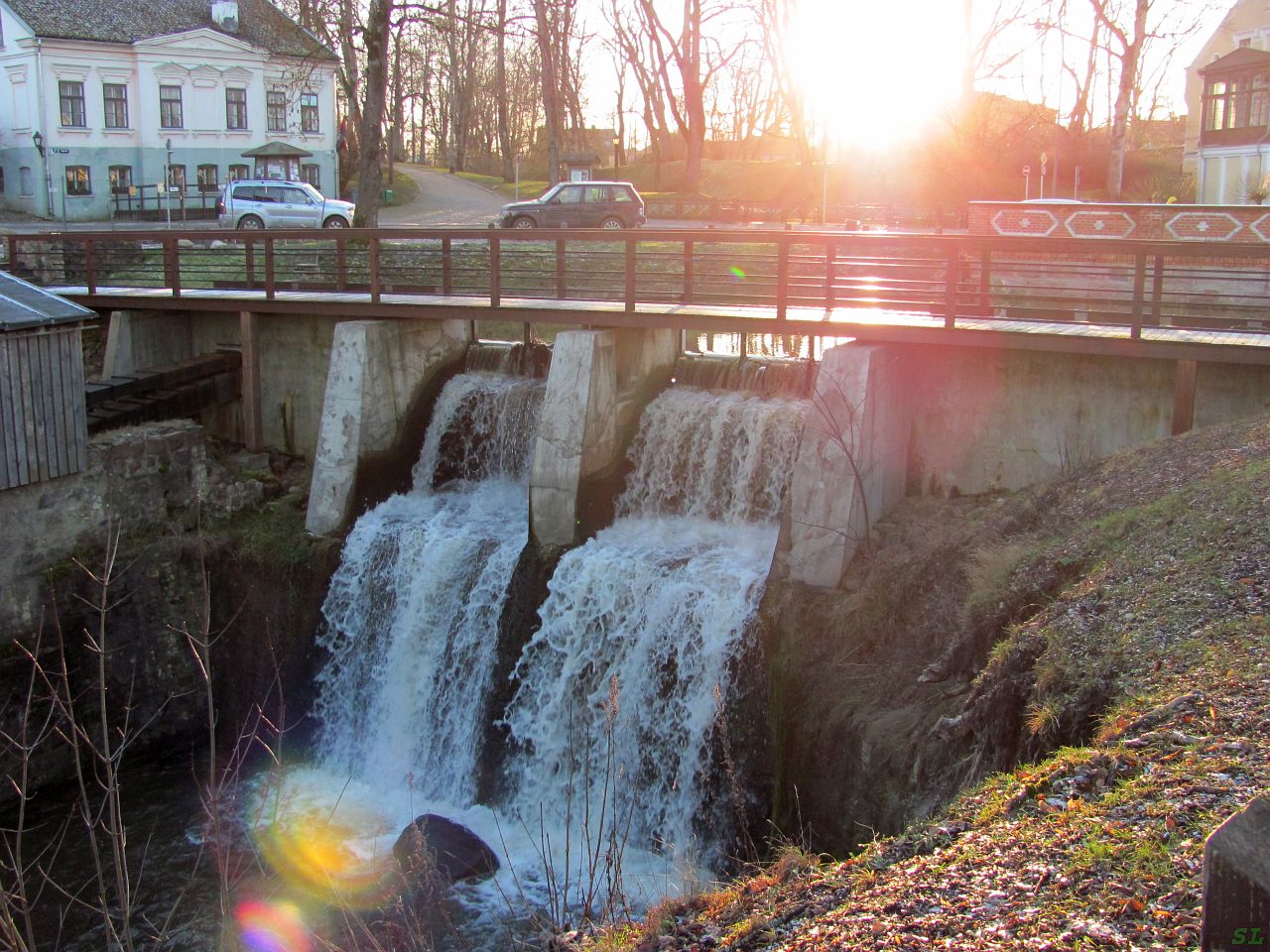 И тут же снова водопад, на сей раз самый высокий (4.15 м) латышский водопад на р. Алекшупите, здесь эта река впадает в Венту. Вот сколько всего самого-самого в этом небольшом латышском городке. Еще тут самое большое количество бесплатных туалетов, они почти на каждом углу, рядом с этим водопадом тоже есть. Николай Комаров этот факт отметил специально и не раз, по его словам это самый удобный в Европе город, а может, и во всем мире :).