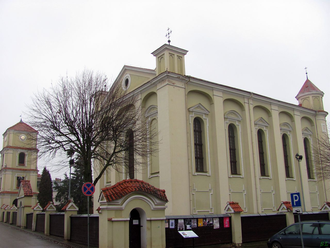 И нам теперь и без навигатора было понятно, куда дальше ехать, спустились вниз, проехали 500 метров - и мы на парковке уже действительно перед монастырским комплексом. Ансамбль костёла и бывшего доминиканского монастыря включён в Регистр культурных ценностей Литвы. Лишкява упоминается в письменных источниках с 1044 года. Люди в окрестностях современной Лишкявы жили еще во втором тысячелетии до нашей эры. Первая небольшая деревянная приходская церковь в Лишкяве была построена в 1450 году. И доминиканцы здесь были не всегда, а только с 1703-года, тогда же они и построили этот барочный комплекс. Но нам тут дважды не повезло. Во-первых, мы сразу увидели, что главный вход в центральное здание - костел, затянут в леса. Но зато скульптура св. Аготы на колонне вполне смотрибельна, хотя кажется, что ее скоро тоже будут реставрировать, штукатурка у колонны пообсыпалась. Второе невезение - оказывается, вход в костел и в здания монастыря закрыт, и висит объявление, что посетить их можно только с гидом по предварительной договоренности и указан телефон. Хотя какие-то люди строительного вида нами были обнаружены в монастырских зданиях. Но на наши вопросы они только плечами пожимали - никак нельзя нам помочь, звоните и договаривайтесь. Откуда бы нам это было заранее знать. Поэтому нам осталось только обойти и посмотреть все снаружи с разных сторон. И еще раз полюбоваться Неманом. Кстати, раньше здесь проходила граница между Польшей и Литвой, и тот берег был польским. Ну а монастырь перестал быть действующим 18 июня 1814 г., когда умер и был похоронен в подвале церкви последний доминиканский монах. |