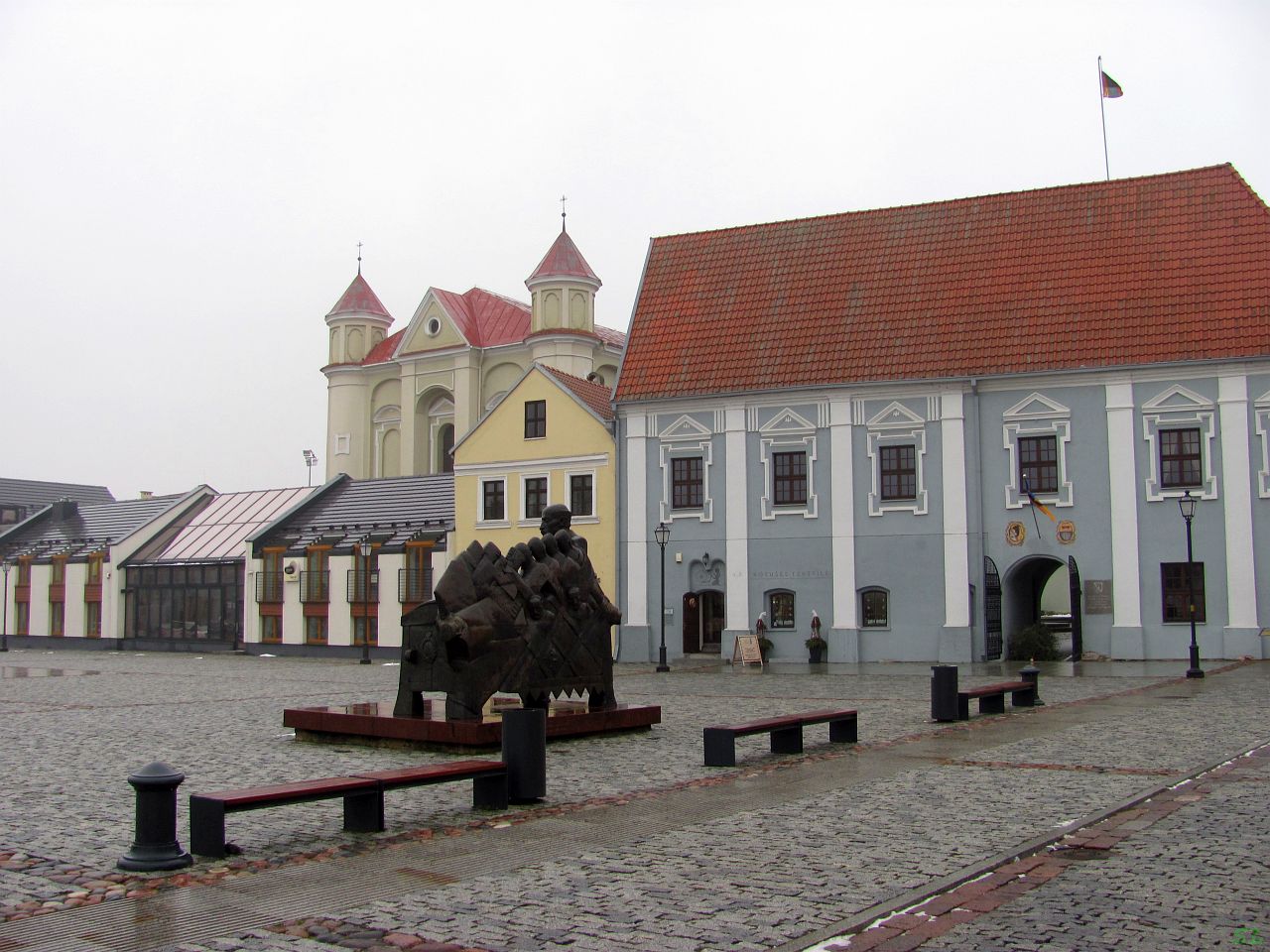 Ну раз площадь Ратушная, значит, тут и Ратуша. Вот она, такая скромная и строгая. Это одна из трех сохранившихся в Литве ратуш, единственная в стиле ренессанса, построена в 1654-м году, в 19-м веке отреставрирована. Ранее в подвале ратуши располагалась тюрьма и архивы, на первом этаже – магазины (в них хранились образцовые весы, эталоны длины и меры), а на втором этаже – рабочие помещения Магистрата и зал суда. В настоящее время в ратуше расположены информационный центр туризма и ЗАГС. |
