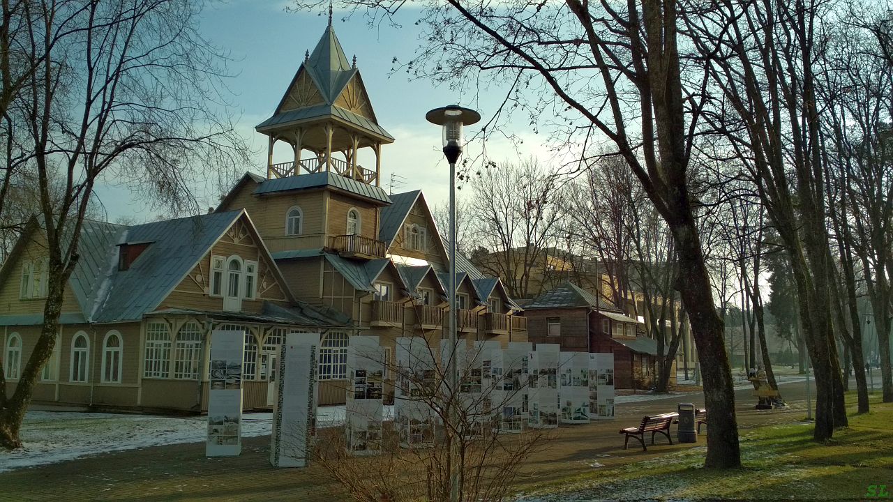 Вернулись в отель, машину на парковку и пошли смотреть город, порознь, поскольку Комаровы тут все видели и не хотели нам портить новизны впечатлений. Но на самом деле могли и не расходиться, потому что, видимо, в силу особенностей этого городка, мы встречались каждые 10 минут. Встречались и расходились, ходили встречными курсами и параллельными, и почти всегда недалеко. Название города произошло от названия поселка Друскеники, который появился в исторических документах в 1563-м году. Исходным для названия было литовское слово druska (соль). Это связано с наличием на территории города источников с солоноватой минеральной водой, которые с XX века стали основой курортной индустрии города. Хотя статус курорта Друскеники получили ещё в 1793 году, когда целебные свойства местной воды были подтверждены личным врачом польского короля. Ну и дальше курортная история города только развивалась. |