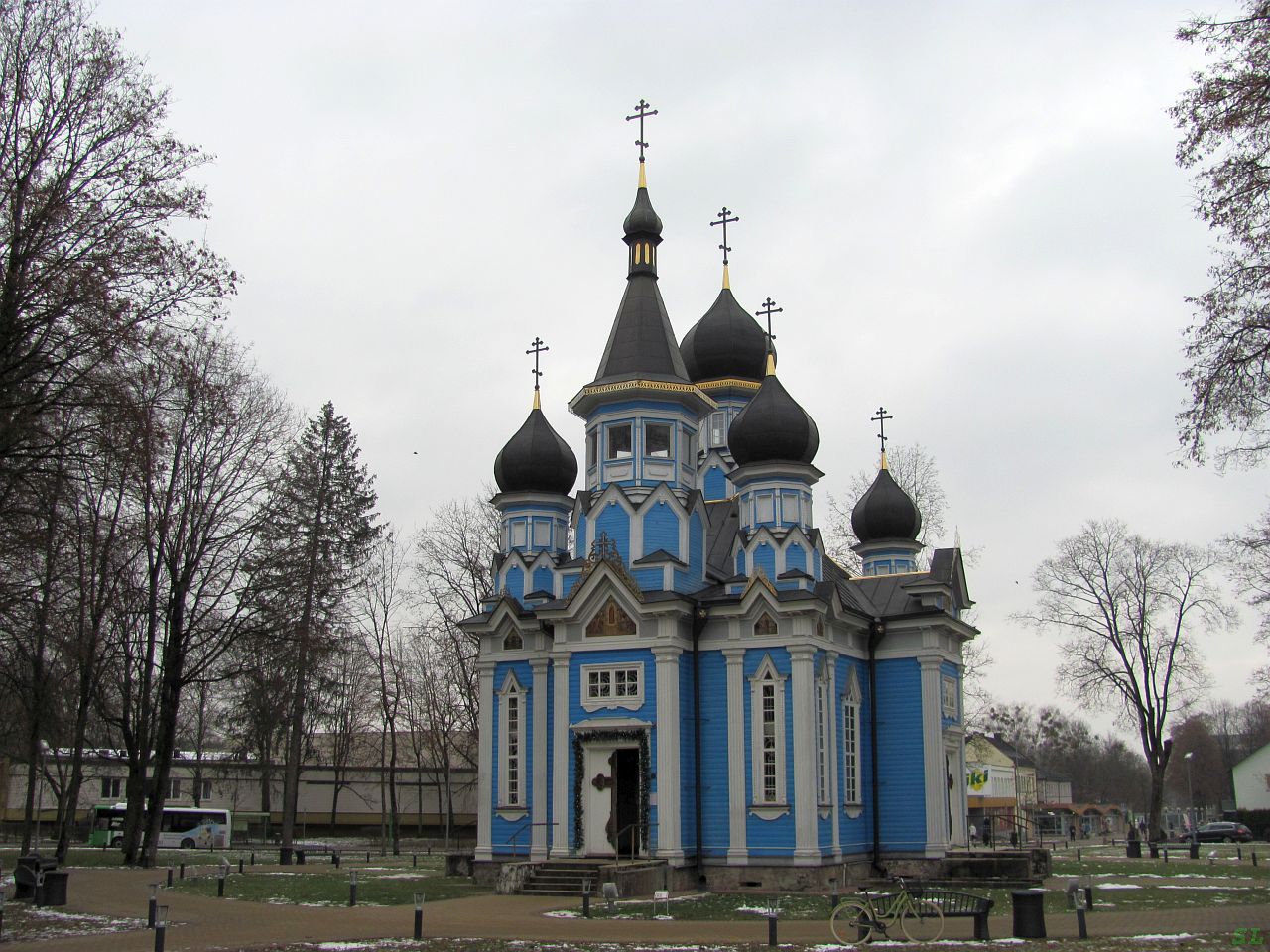 Или вот голубенькая церковь-шкатулочка, Храм иконы Божией Матери "Всех скорбящих Радость". Церковь была построена в 1865-м году усилиями гродненского вице-губернатора Иакова Рожнова. Он оплатил почти все расходы по её строительству. | |