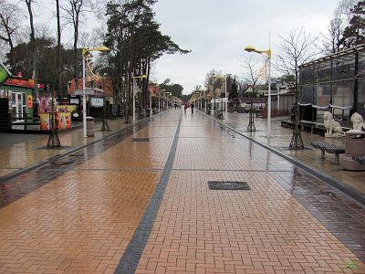 И все дороги в Палангѐ ведут к морю и к пирсу, но есть главная - местный "Бродвей" - пешеходная улица Йонаса Басанавичяуса. На ней и сосредоточена, видимо, вся Палангская курортная жизнь, судя по количеству кафе и ресторанов. Но сейчас тут было пусто или даже пустынно, мы почти одни по ней гуляли, наблюдая издалека, как по этой же улице гуляют Комаровы. |