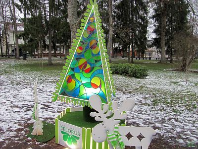А потом целый ёлочный базар или парад, аллея в парке из них с табличками про авторов. Тут отметились своими фантазиями все, кто только смог, даже из соседней Беларуси был свой ёлочный рождественский привет. |