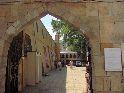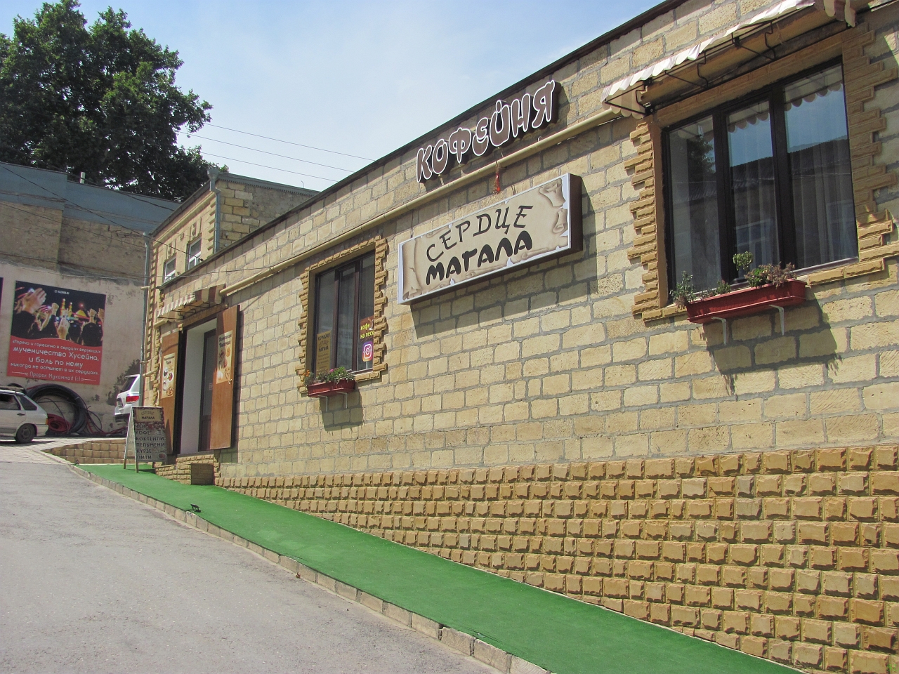 Недалеко от мечети кофейня "Сердце Магала", и нам захотелось выпить кофе. Зашли, взяли кофе, Марина ещё какой-то сладкий национальный пирожок, кофе оказался так себе. Зато там было прохладно, и хозяин нам на телевизоре включил фильм про скорое местное событие. Здесь готовились отметить день Ашура. В этот день в 680-м году в сражении около Кербелы погиб имам Хусейн, внук пророка Мухаммеда. Это траурный день, отмечается шиитами 10 числа месяца Мухаррам, в этом году это 19 августа. |