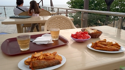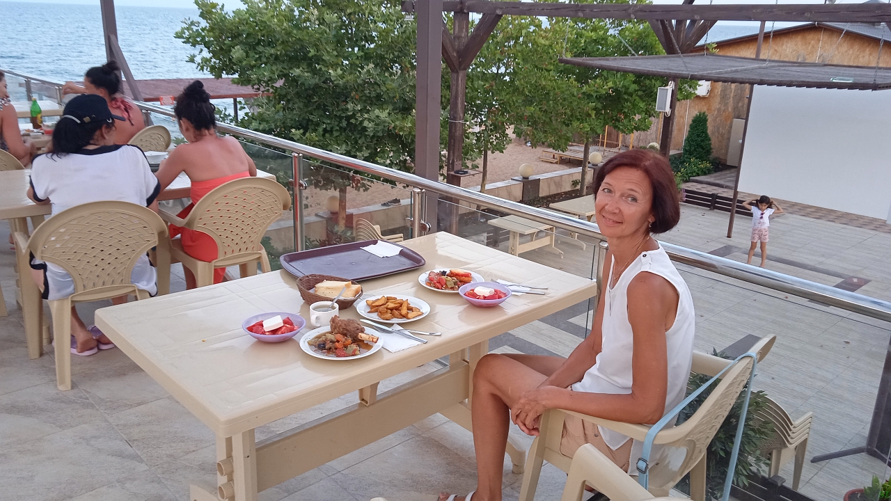 А после столовой Марина нарезала на тарелочку сыр, мы брали бокалы с красным вином и немного сидели наверху на веранде "Вояжа", если там никого не было. А уже когда совсем темнело, снова с бокалами и бутылкой уже белого холодного вина и фруктами уходили на пляж и там сидели долго-долго на топчане, и вот это всё было приятно.