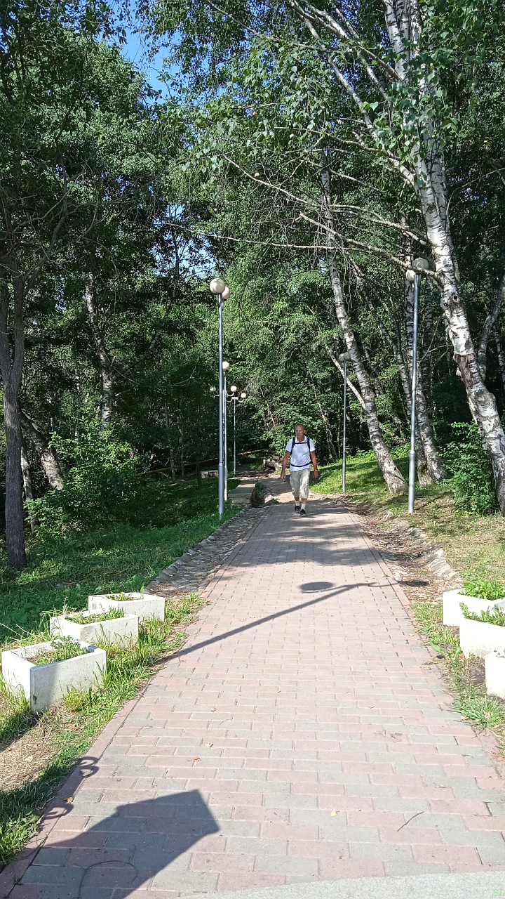 Мы уже тут не новички, сразу выбираем направление на самый трудный маршрут. Насколько я помню, он маркирован как №3, иногда соединяясь с маршрутом 2Б. На самом деле ничего там сверхординарного, всё преодолимо на уровне среднего пенсионера, идёшь себе и идёшь, главное - делать это неспешно и без перенапряга. А уж для Марины тут вообще всё в шутку, я по гравийной дорожке, а она коротким путём всё время норовит, там, где подъём покруче. Сегодня мы уже не гонялись за достопримечательностями, как в прошлом году, просто шли и шли по дорожкам и тропам вверх. Подъёмник, в отличие от прошлого года, работал, но это не наш стиль, прошли мимо, потом немного отдохнули на фотосессии на серых камнях и дальше. В прошлом году мы не успели дойти ни до одного Кисловодского Седла, сегодня хотелось это сделать. Но пока план - до беседки "Семи ветров" - и его потихоньку выполняем. Марина легко, я как-то с остановками, но не сдаюсь. Конечно, я ведь с рюкзаком, это вам не дамская сумочка :). Он сам по себе килограмма два весит. А к концу подъёма так и значительно больше... :)