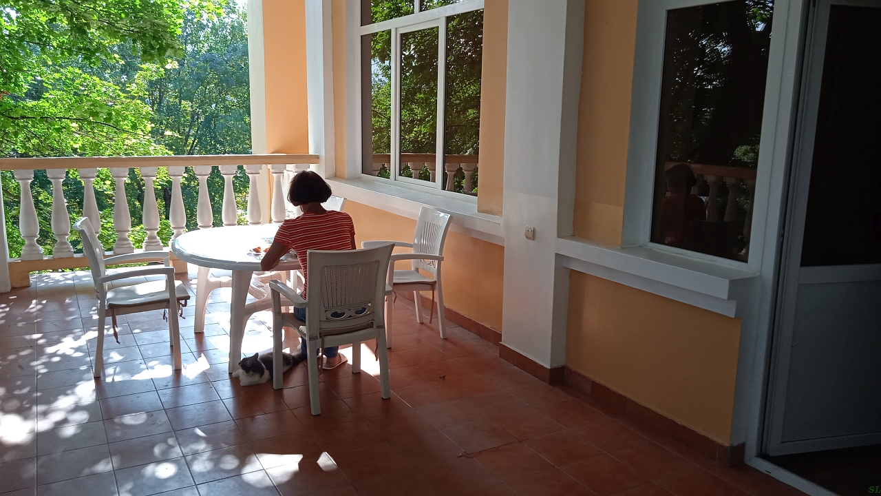 Нам даже номер достался всё тот же, знакомый нам во всём, и встретила нас наша старая знакомая кошка Александра, похоже, главная хозяйка дома "Люкс", встретила и проследила, чтобы мы устроились со всеми удобствами. Ну, и она вместе с нами. И поскольку сегодня погода продолжала быть так себе, почти всё время что-то сверху моросит, мы ничего особого не планировали, просто взяли зонты и погуляли по нижней части парка, не забыв, конечно, посетить Главную нарзанную галерею. А потом бассейн и уютный, практически домашний ужин. |