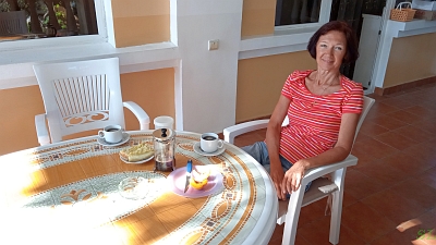 С завтраком здесь вообще всё стало хорошо, выбирай из меню всё что хочешь, никаких комплектов, и по-прежнему всё вкусно и по-домашнему. И так же старательно накрыто. И кофе стали нам варить вполне приемлемый, что не мешало всё равно потом понаслаждаться комфортом на своей просторной лоджии с чашкой уже своего кофе, ещё более правильного :). И с Александрой, она приходила, вроде как за угощением, но особо ничего не просила, просто валялась, мурлыкая. Но если ей доставался кусочек бисквита, то аккуратно его съедала и снова укладывалась на своё место. А нам надо начинать доделывать то, что не доделано в прошлом году. Для начала мы потопали на местный центральный рынок познакомиться с ним, ну и может купить что-то для развлечения. Он у нас совсем недалеко от дома, метров пятьсот пешком. Рынок, конечно, очень большой, мы ходили тут точно больше часа. |