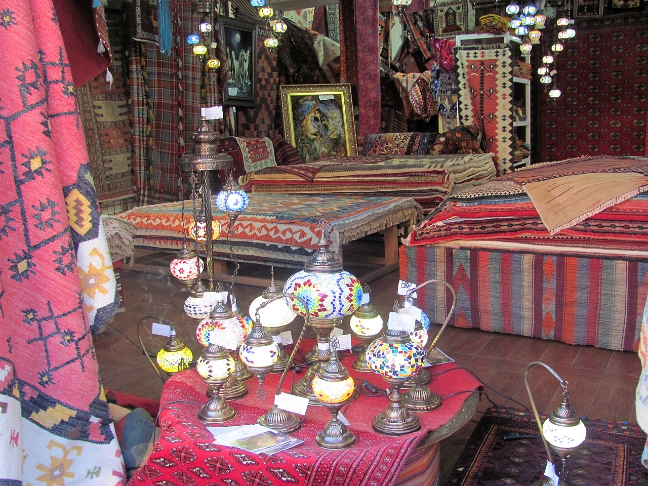 Или смотрели, как на витрине лавки таинственно расцвечиваются  лампы, какая-то из них точно была в руках Алладина, как в глубине пестрят кучи восточных ковров и, видимо, там ещё полно всяких сокровищ.