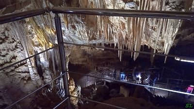 Тут же здание с кассами, за посещение пещеры с иностранцев берут 25 лари, грузины платят вдвое меньше. Начала экскурсии пришлось подождать минут двадцать. Пещера длиной аж 11 километров, для посещения открыт только километр с небольшим. Для туристов она открыта только в 2011-м году и, конечно же, это всё сделано по инициативе М. Саакашвили. Такое ощущение, что всё в Грузии сделано при нём. И конечно, название пещере дал тоже тогдашний президент страны. Мы посетили в своих поездках много разных пещер, и все они не любят фотографироваться, не могут фотоаппараты передать их подсвеченной красоты. Так же и здесь. Но хочу сказать, что пещера красива, грандиозна и посещения достойна. Кстати, интересный момент. Экскурсовод, молодая девушка, вела рассказ на грузинском и английском языках. И одна женщина спросила, а на русском можно? В ответ девушка возразила, что этот язык не является обязательным для экскурсии, но тем не менее в дальнейшем каждый свой рассказ сопровождала ещё и русским переводом. |