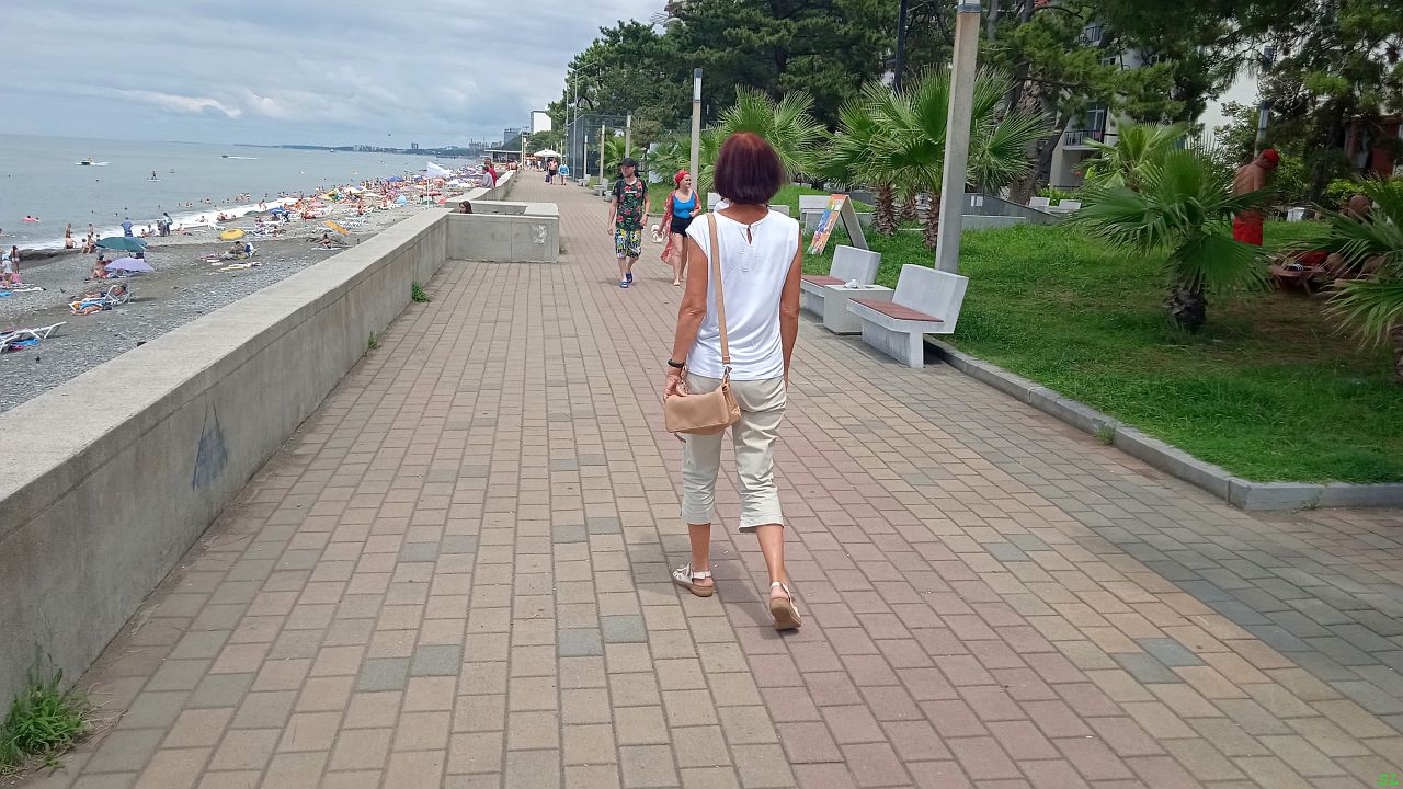 Когда справа показался Кобулети, я предложил Марине туда заехать и познакомиться с этим тоже курортным городом. Дело в том, что он у нас долго был в планах вместо Шекветили, и мы там какое-то время держали бронь в мини-отеле на первой линии Kobuleti Rezidenz (на момент создания рассказа его уже не было в доступных на Букинге и вообще нигде). И поэтому хотелось посмотреть, чего мы лишились, и лишились ли. В общем попытаться сравнить Шекветили и Кобулети.