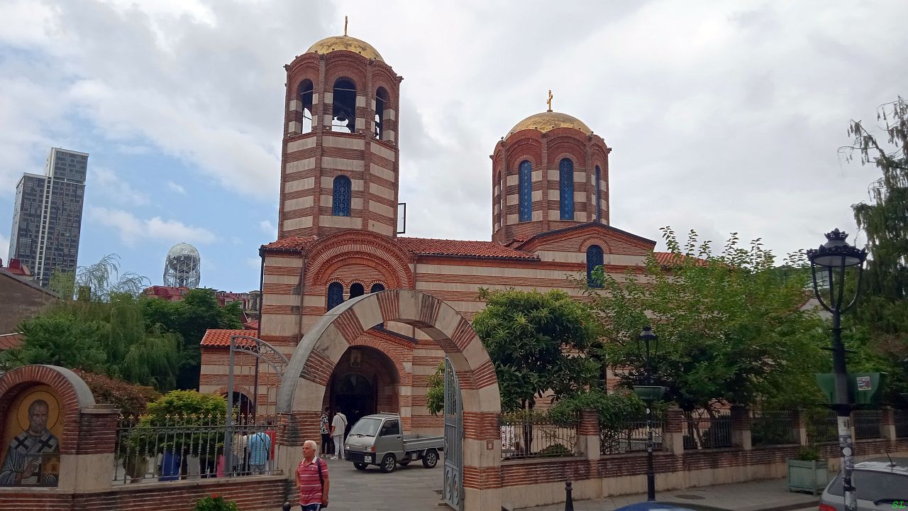 Отсюда пошли к видневшемуся неподалёку красивому собору, это Кафедральный собор Батуми. Хоть собор и православный, но здание явно сделано в готическом стиле. И правда, эта церковь, ровесница Батумской синагоги, была выстроена именно как католическая и долго такой оставалась. Но в 1980-м году она была передана православной церкви, и теперь это действующий православный собор. Только сфотографировать его трудно, собор закрывают здания и густые высокие деревья. |
