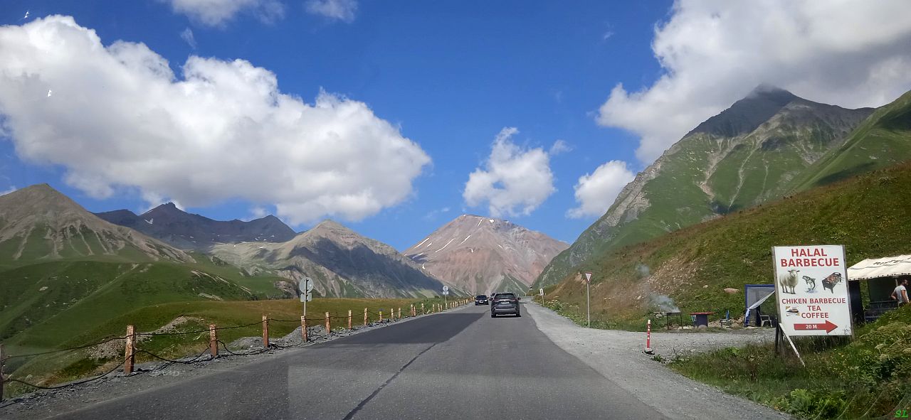 Опять Лейла расстаралась на завтраке, спасибо ей. Она же и расчёт с нас потом взяла за жильё. Перетаскали вещи в машину и до свидания, отель, до свидания Тбилиси. Только отъехали от отеля, как тут же сбойнул Я.Навигатор, потерял маршрут, потерял конечную точку, а поскольку у нас интернета нет, то восстановить маршрут не удавалось, такое у этого навигатора свойство. А iGo я и не включил сегодня, и мы оказались вовсе без электронной навигации. Ну и ладно, ездили так раньше без особых проблем, есть указатели, цель и направление однозначны - Верхний Ларс, вот и поедем на него. И поехали, легко и правильно выехали из города, а дальше одна дорога, сначала совсем не интересная, потом начались узнавания и стало ехать повеселее.