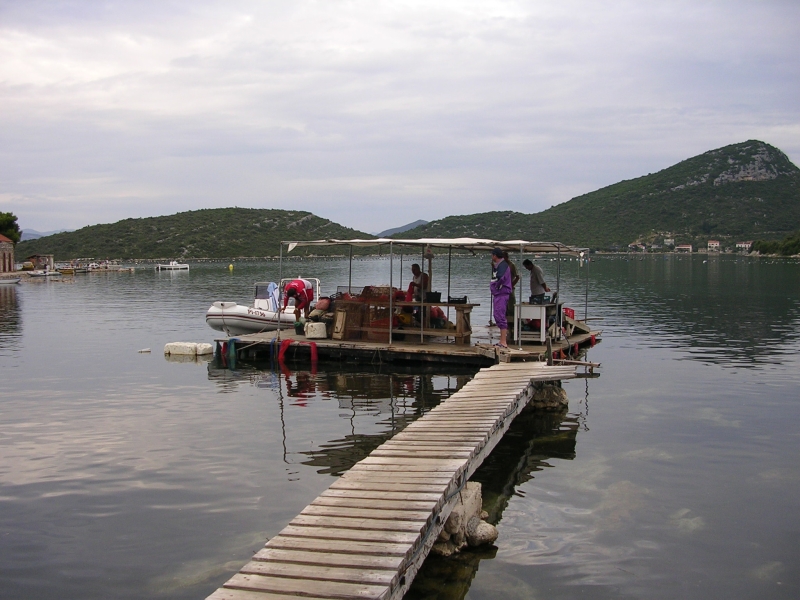 Но у него есть один большой плюс. Еще в первый день Иво Виолич нам посоветовал ездить ужинать сюда, по его словам именно здесь лучше всего готовят морские продукты. И вправду, мы заметили в заливе устричные плантации, кафе на берегу с изображением ракушек и решили, что приедем сюда обязательно.