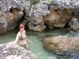 Действительно - есть узкая щебеночная дорожка над морем. Едем по ней, рассматривая ниже лежащие перспективы в надежде увидеть местные пляжи. И вот, увидели замечательный пляж далеко внизу. Недолго думая, оставляем машину наверху, переодеваемся в купальники и начинаем поиски дорожки вниз. Она находится, но это скорее тропка, спускающаяся круто вниз, по которой мы, хватаясь за ветки деревьев, торчащие корни спускаемся целыми и невредимыми.
