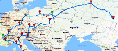 (Энгельс - Словакия -Франция-Бельгия - Франция - Швейцария- Австрия - Энгельс)