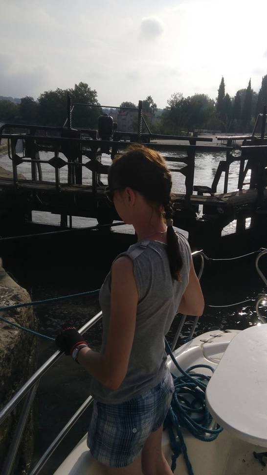 Я описываю подробно – может быть кто-нибудь соберется в такое путешествие когда-нибудь. А именно все подобные детали и были абсолютно неясны , несмотря на наличие множества всяких наставлений и инструкций. А на деле все оказалось не сложно. На берегу стоит человек, который показывает рукой куда надо швартоваться в шлюзе. Шлюзы на этом канале старые, причудливой овальной формы и небольшие. Это не то, что на канале им.Москвы.