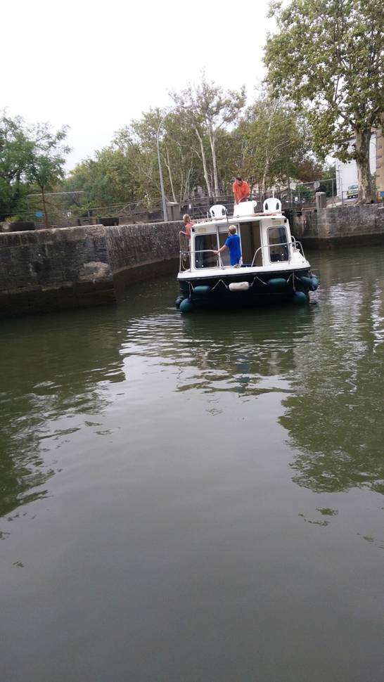 подошли к городу Фронтиньян. Как я уже упоминал, в нем подъёмный мост, который поднимают дважды в сутки в 8 утра и в 16. Опоздали мы всего на час или около того, но мы и не стремились