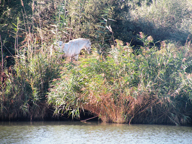 Этот день – наверное, самый простой. До порта назначения не больше 20 км. Дорогу знаем :) - проплыли по ней уже вчера, только теперь - в обратную сторону. Поэтому – сегодня можно никуда не торопиться. Утром на другом берегу канала увидели дикую белую лошадь. Да –ведь это Камарг!*