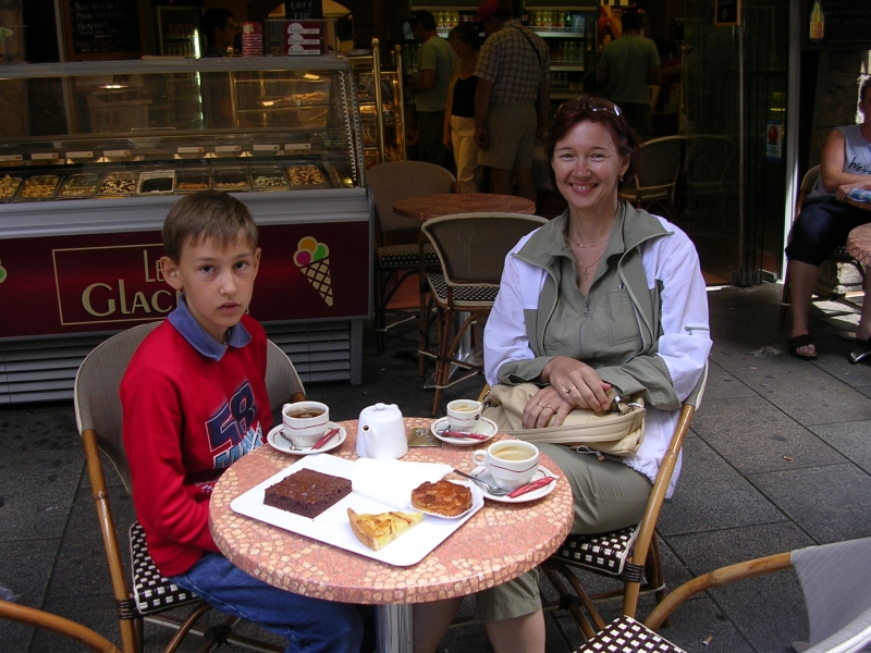 Следуем за таксистом, который через весь город провез нас почти обратно, остановился прямо у щита отеля и помахал нам на прощание рукой. И мы ему тоже и еще спасибо в окошко кричали. Хорошие люди французы, отзывчивые и бескорыстные J.